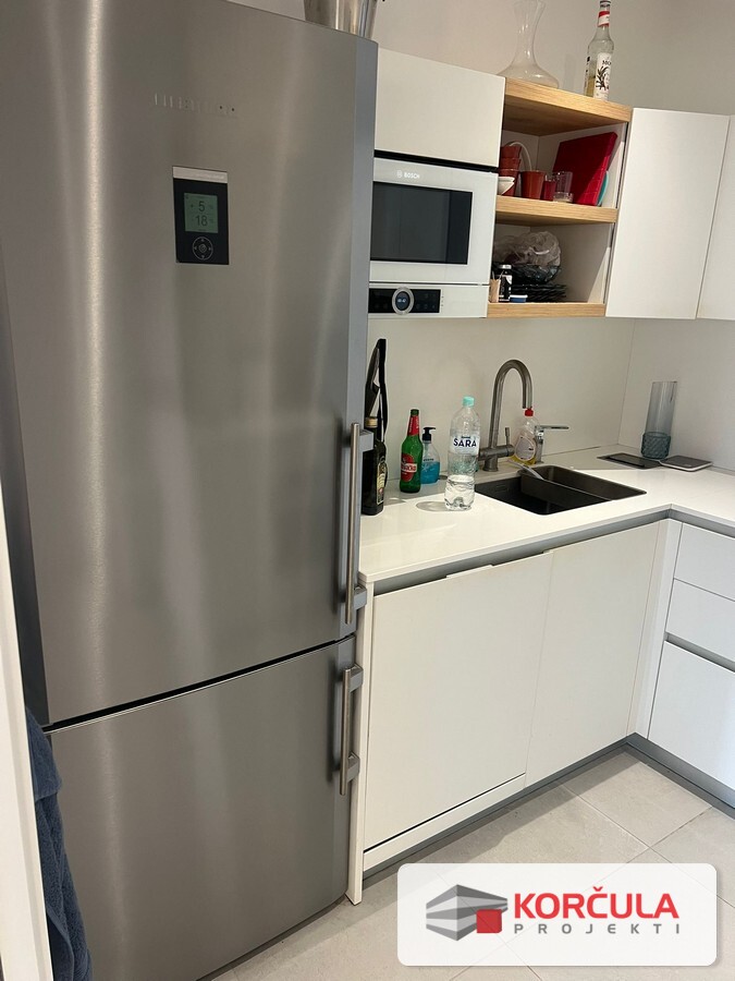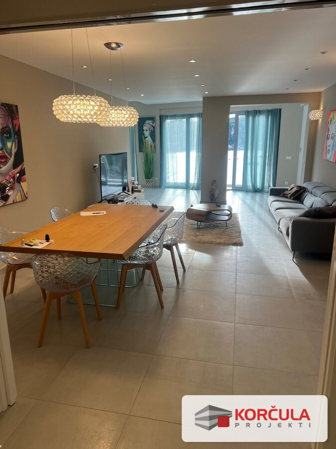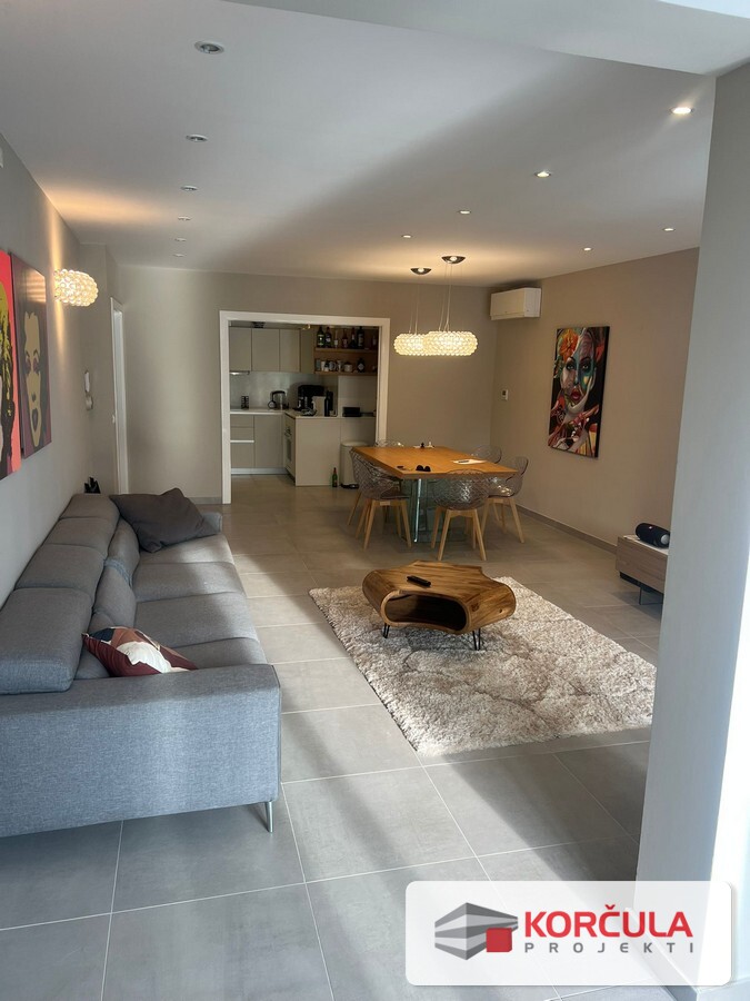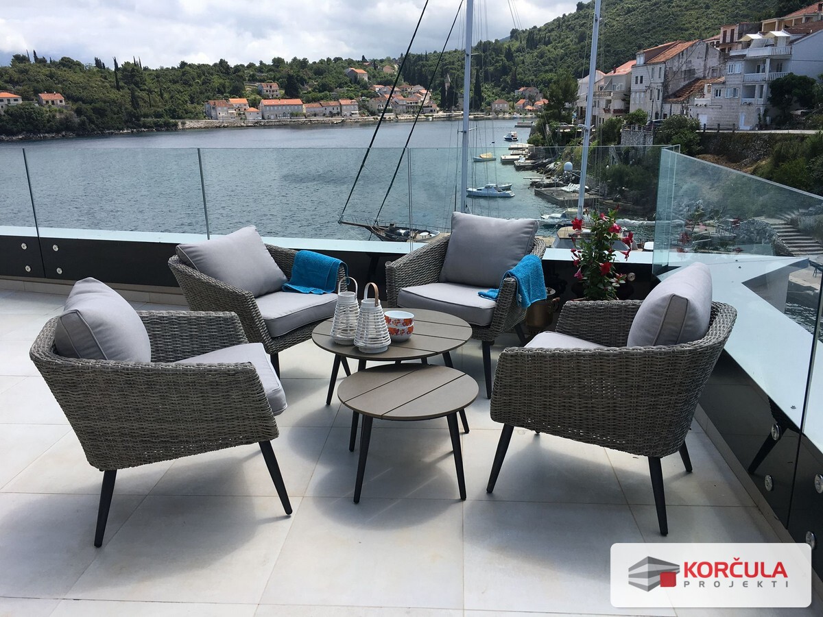 For sale is a newly awarded and fully luxuriously furnished apartment located on the first floor of a building in Račišće, with an auxiliary building and landscaped garden.