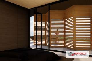 Vila će se sastojati od ulaznog trijema tj. ulaznog dijela, hodnika, wc-a, praonice rublja, servisne sobe te dvije spavaće sobe s vlastitom kupaonicom i garderobom, prostranog dnevnog boravka, kuhinje i blagovaonice s izlazom na natkrivenu terasu, sunčalište, vanjski bazen i imat će tri parkirna mjesta. Korčula je omiljeno odredište gostiju koji traže nekretninu za odmor.