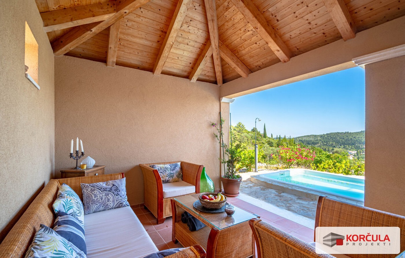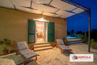Vila raspolaže i bazenom površine 20 m² te se nalazi u mirnom predjelu s tek nekoliko obiteljskih kuća, na relativnoj osami, dok su svi bitni sadržaji – kao i centar Žrnova i grada Korčule – udaljeni svega nekoliko minuta vožnje.